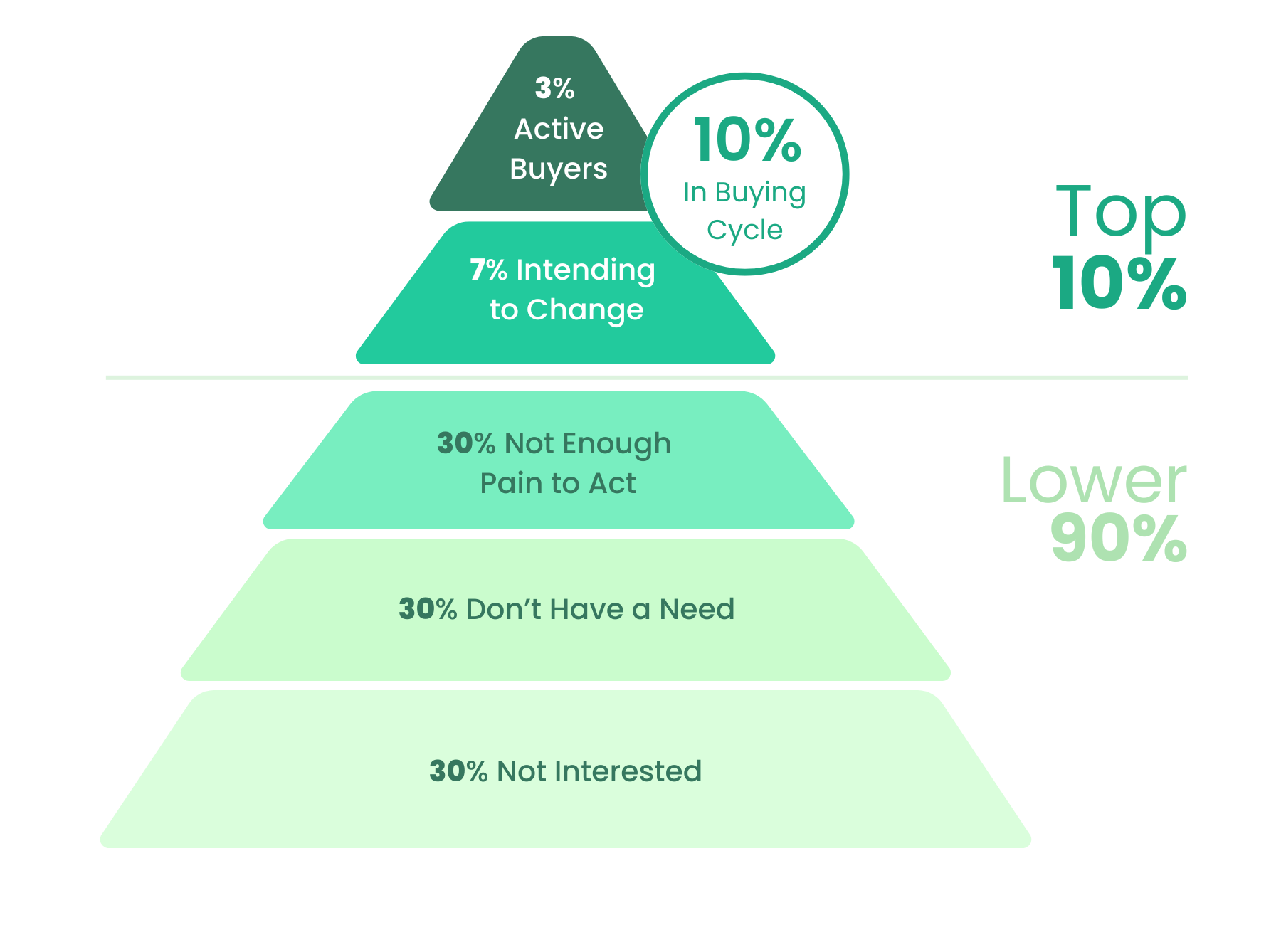 Only 10% of buyers are in market at any point in time, why waste time, effort and money on the other 90%?