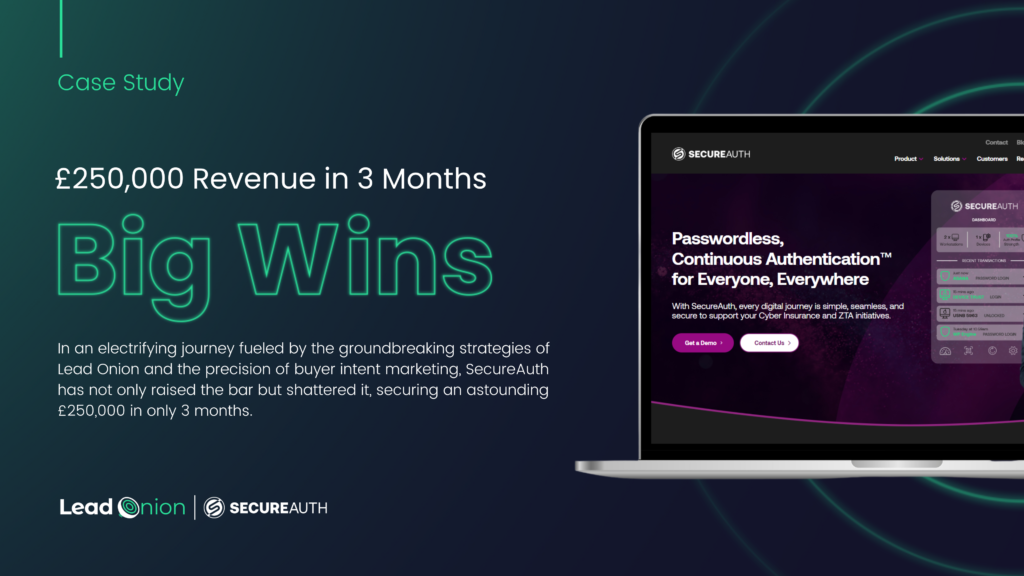 Read how SecureAuth leveraged Lead Onion’s Buyer Intent data to unlock new opportunities, generating £1M in pipeline and £250K in confirmed sales.