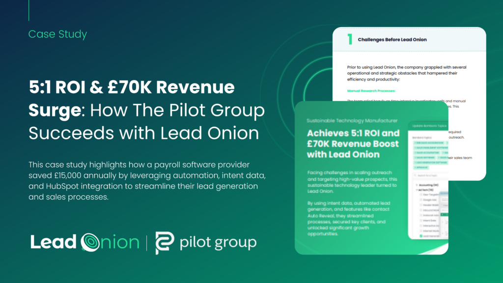 By leveraging Lead Onion’s multi-source intent data and real-time insights, they achieved a 5:1 ROI and generated an impressive £70K revenue boost.