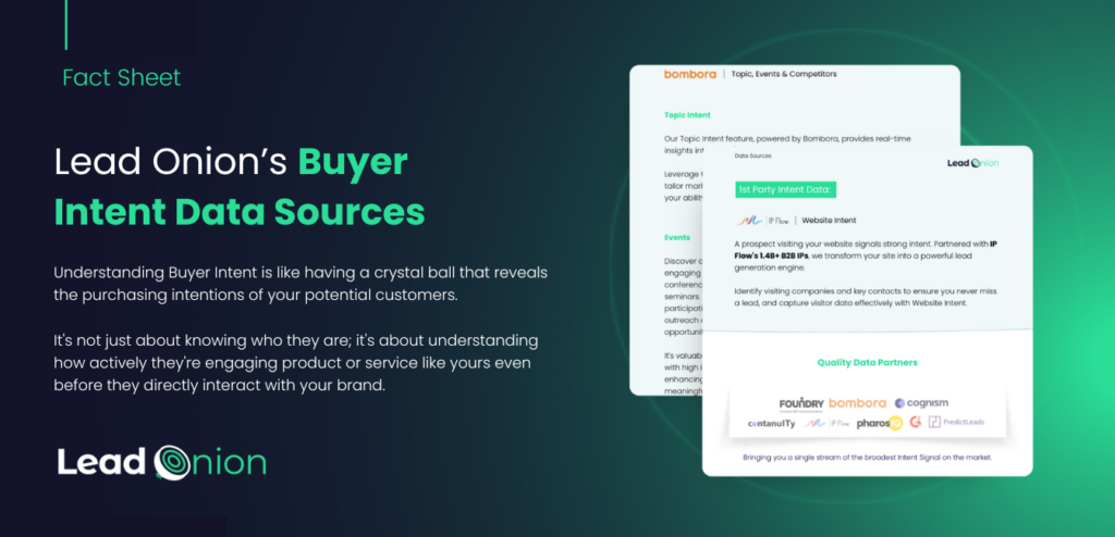 Lead Onion boasts 20 sources of intent, ensuring comprehensive insights into prospect behaviors and preferences.