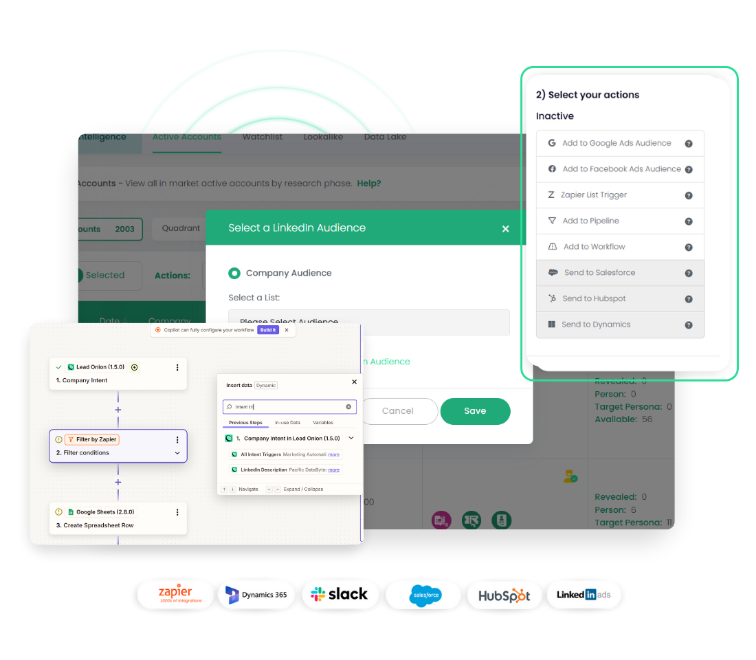 Lead Onion integrates with the platforms your team already uses every day. Keeping workflows connected and data unified across every stage of your go-to-market motion.